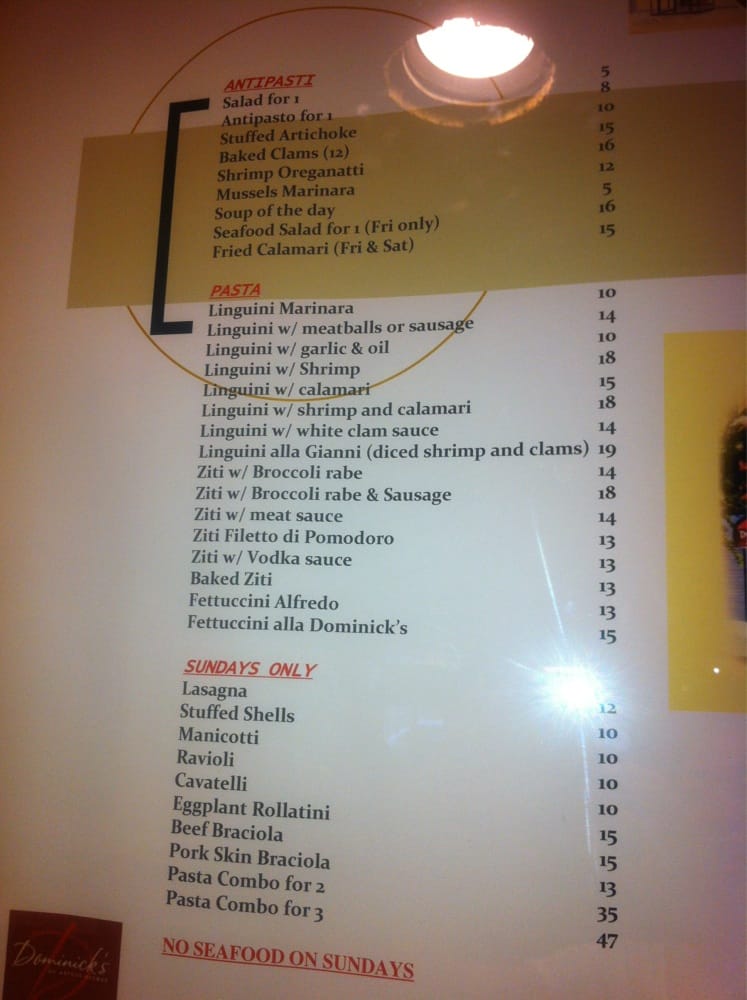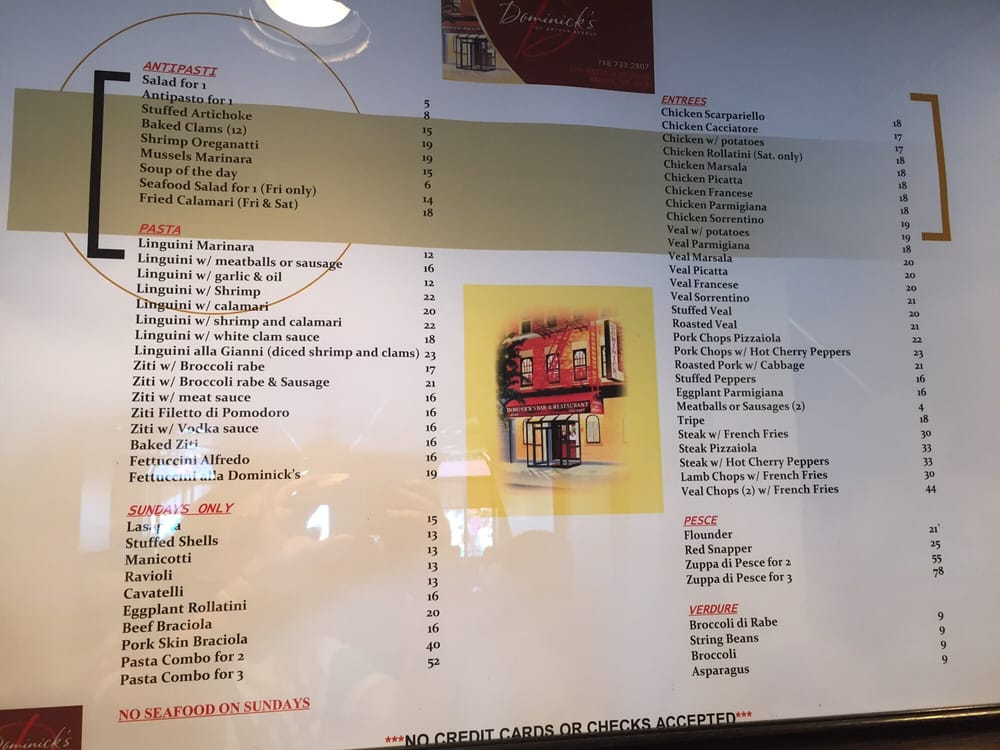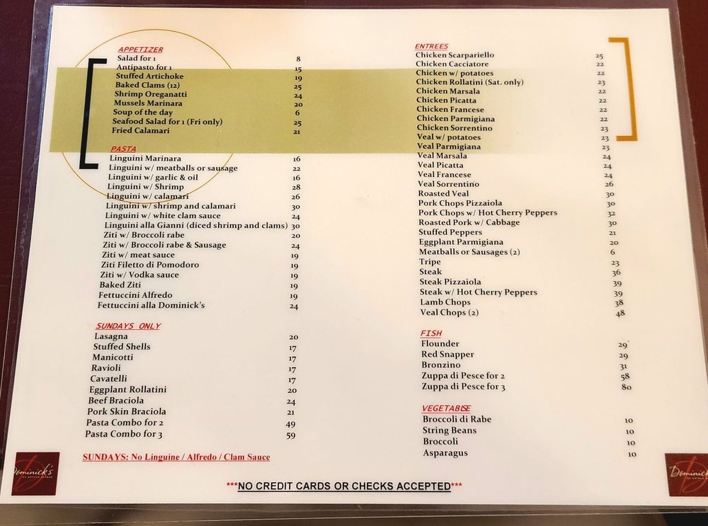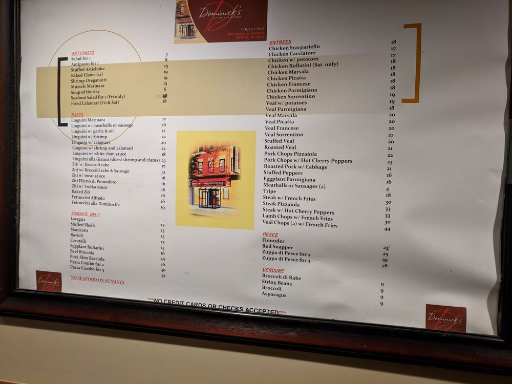 Dominick's Restaurant, located in Bronx, NY, is a must-visit for Italian cuisine lovers. With a wide variety of antipasti options like Baked Clams, Stuffed Artichoke, and Shrimp Oreganatti, your taste buds are in for a treat. Their pasta selection includes classics like Linguini Marinara, Linguini with Shrimp, and Ziti with Broccoli Rabe. Sundays bring special dishes like Lasagna, Stuffed Shells, and Ravioli. The restaurant offers outdoor seating and is perfect for a casual dining experience. The attentive waiter service, full bar, and TV make it an excellent choice for group gatherings or family dinners. Don't forget to try their seafood dishes and vegetarian options. Dominick's Restaurant truly delivers an authentic taste of Italy in a cozy atmosphere.